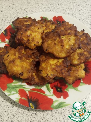 Предлагаю приготовить золотистые, солнечные куриные оладушки с луком и морковью. Оладьи получаются сочные, нежные и очень вкусные!