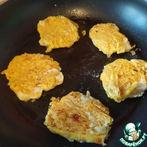 Жарить с двух сторон на небольшом огне, под крышкой.