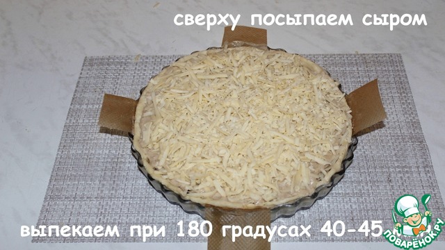 Сверху посыпаем сыром. Выпекаем при 180 градусах 40-45 минут.
