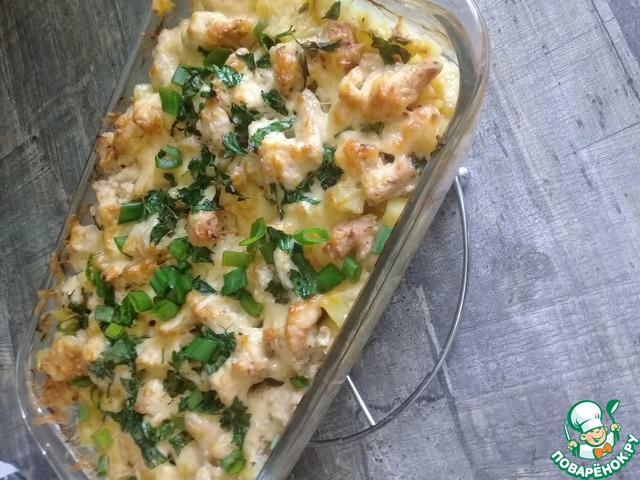 Молодая картошечка с нежным куриным филе и ароматными специями под сыром - почти без масла и никакой жарки - быстро, вкусно и легко!