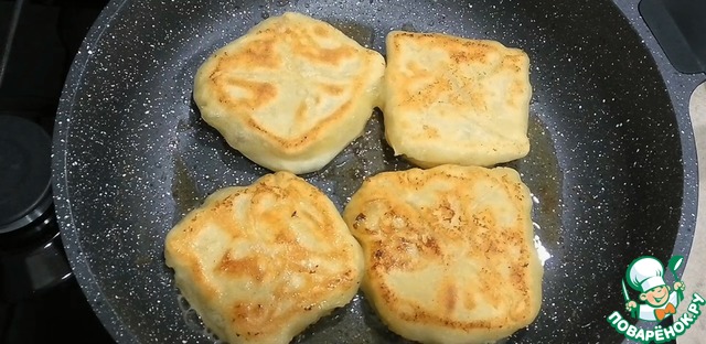 Каждую лепешку следует смазать растопленным сливочным маслом. Затем собрать края так, чтобы получился квадрат.