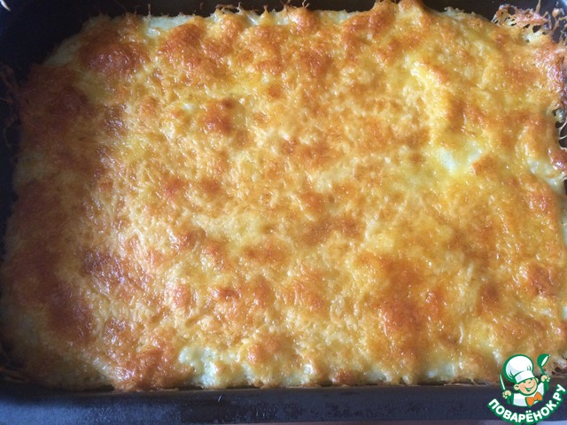 • Выложить в смазанную маслом форму и посыпать оставшимся сыром.