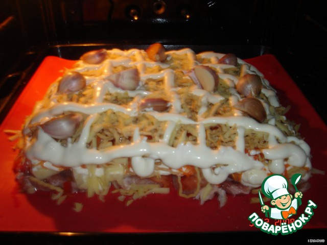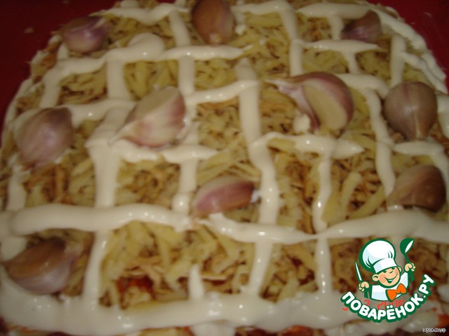 • Сыр заправить майонезом в виде "решетки",