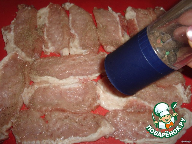 • Мясо отбитое выложить в форму для запекания,