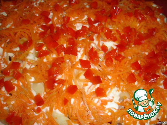 • Следующий слой из моркови + болгарский перец.