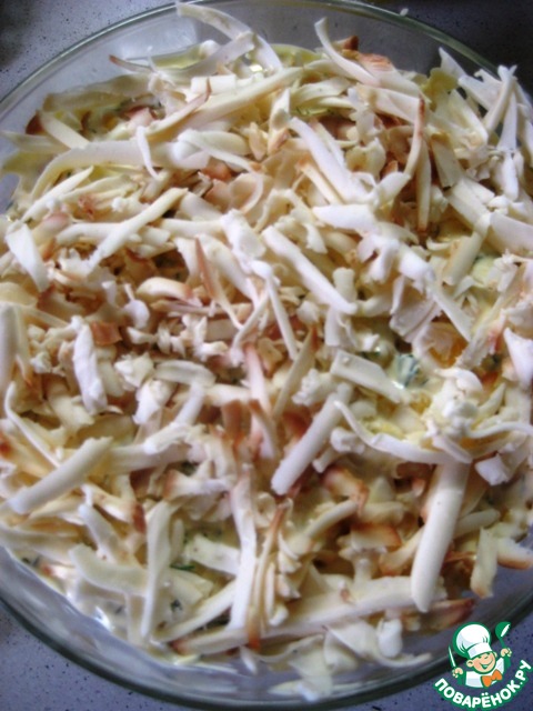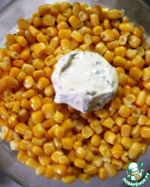 4. кукуруза (жидкость из банки предварительно слить), смазать заправкой.