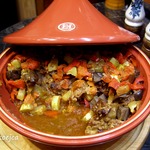 Пылилось это чудо, подаренное коллегами на юбилей, долго. Потом по случаю были подарены специи марокканские и солёные лимоны. Попытки удивить восточным тажином в тажине не увенчались успехом: ну не любители мы кухни северной Африки. Но как-то раз приготовила по-нашему, просто овощи и мясо, причём мясо трудно сказать какой коровьей части и какого сорта. Знаете, прижилось. Вкус ожидаемый, готовить просто, как в мультиварке. Теперь вот этот колпачок частенько занимает почетное место на праздничном столе и радует минимальной суетой и тратами. И экзотикой подачи.
