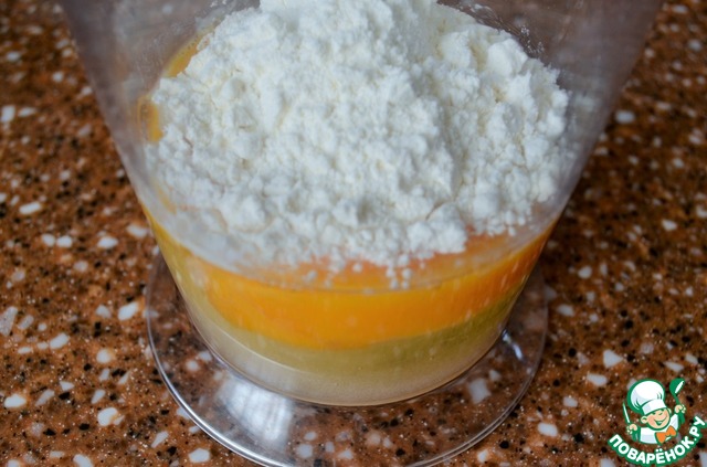 • ТЕСТО : сахар, соль взбить с яйцами до пены,