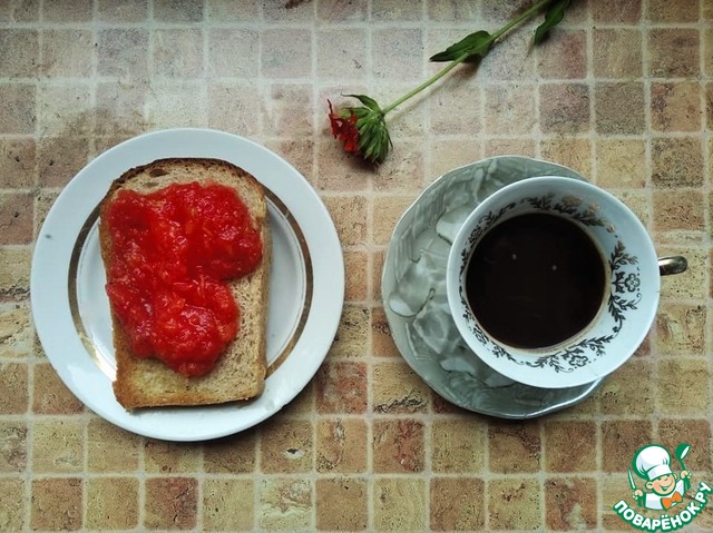 И вот наш "Завтрак бедного андалузца" готов-это хлеб намазаный чесноком. -