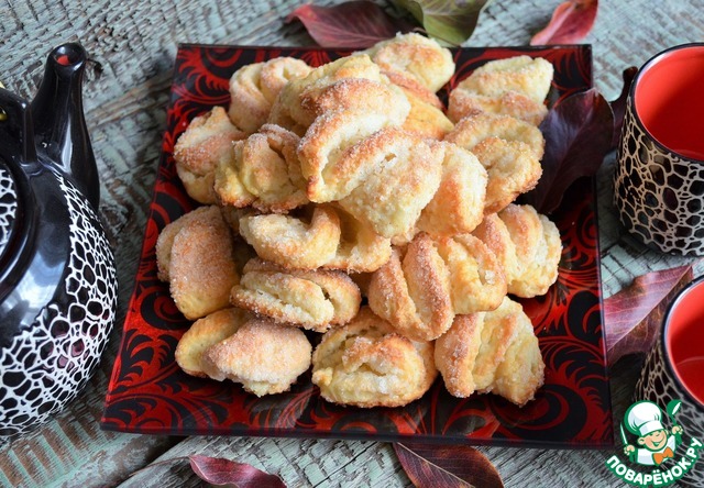 Рецепт из СССР. Очень простой в приготовлении. Печенье получается нежное, слоеное, с хрустящей сахарной корочкой.