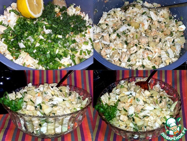 Раскрошила яйца. Нашинковала капусту. Мелко