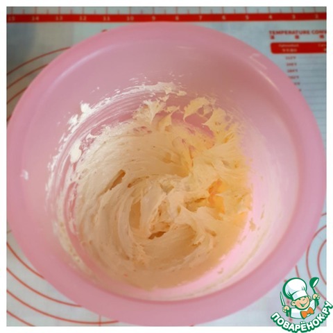 Сливочное масло (мягкое) взбить с сахаром, добавить желток и сметану, еще все хорошо взбить.