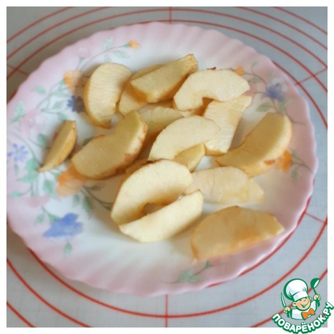 Очистить яблоко и нарезать его на дольки толщиной 5-8 мм.