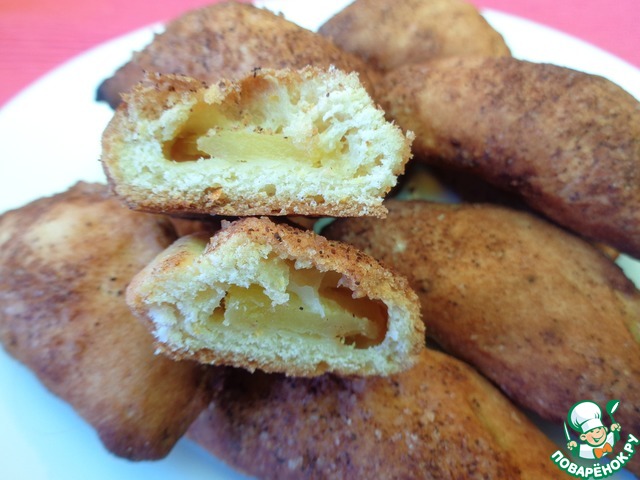 Прикрываем яблоко другой половиной теста, смазываем одну сторону белком (слегка взбейте его) и обмакиваем в смесь сахара с корицей.