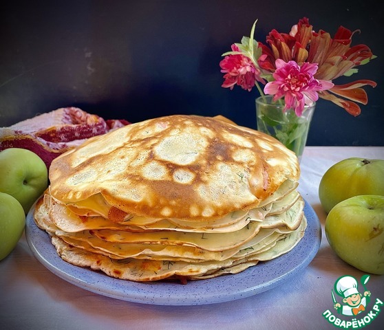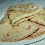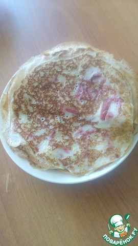 Выпекать как обычные блины. Толщину можно регулировать, я выпекала тоненькие блинчики.