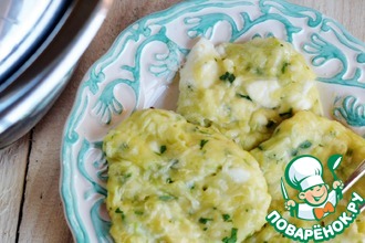 Зелень, 1/2 сыра, перемешать. Попробовать на соль.