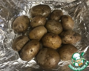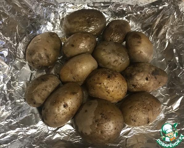 Картофель вымыть, каждую натереть маслом и специями. Завернуть в фольгу и выпекать 20 минут с каждой стороны.