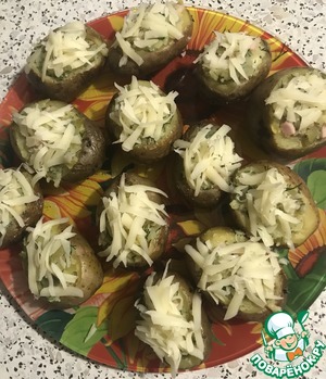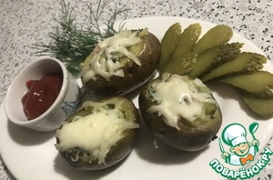 Начинить картофель, присыпать сыром. Далее я готовила в микроволновке-буквально пара минут до момента, как сыр расплавиться.