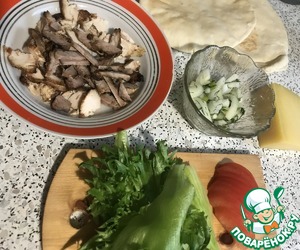Питу разрезать, подогреть на сухой сковороде (на мангале, если готовите в природе).