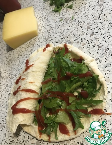 Питу закрыть, и, перевернув листьями салата вверх, обжарить ещё пару минут.