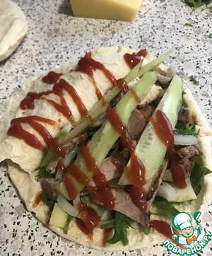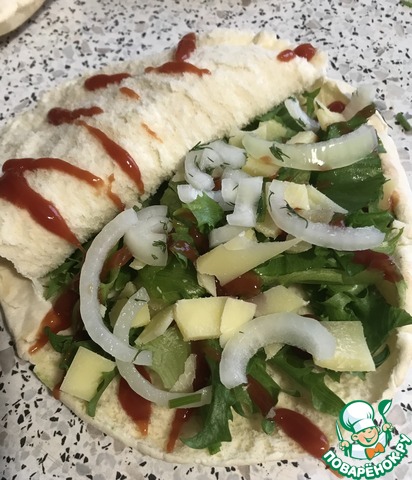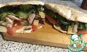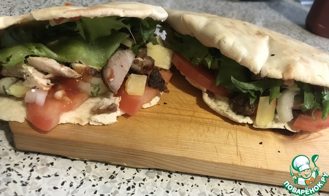 Питу подсушить на сухой сковороде (или на решетке, если готовите в природе). Разрезать, смазать соусом.
