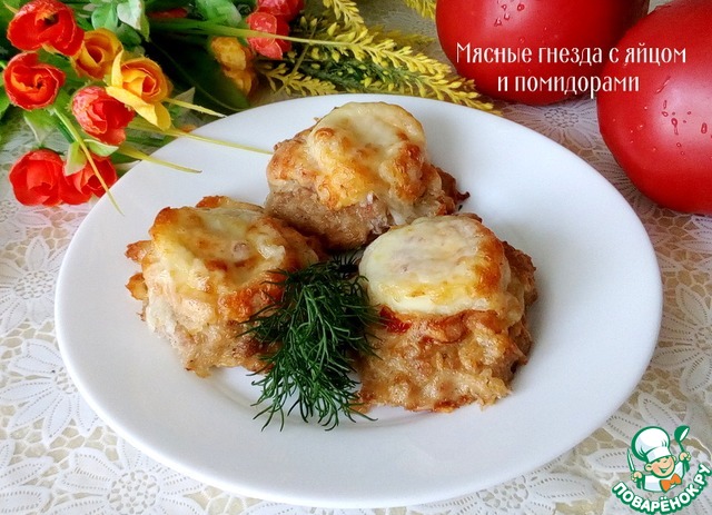 Рецепт «Мясные гнезда с яйцом и помидором»: