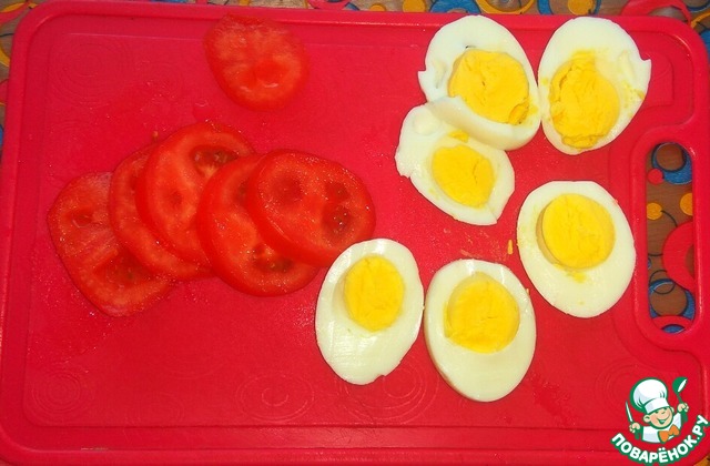 Ингредиенты для «Мясные гнезда с яйцом и помидором»: