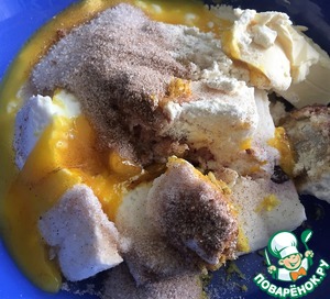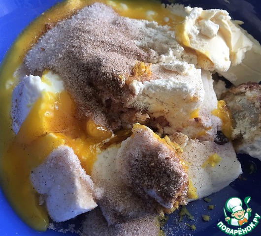 - Творог (жирный, можно пополам творожную массу и творог, как я сделала) — 250 г
