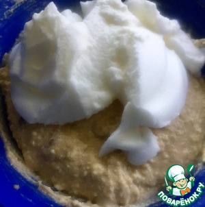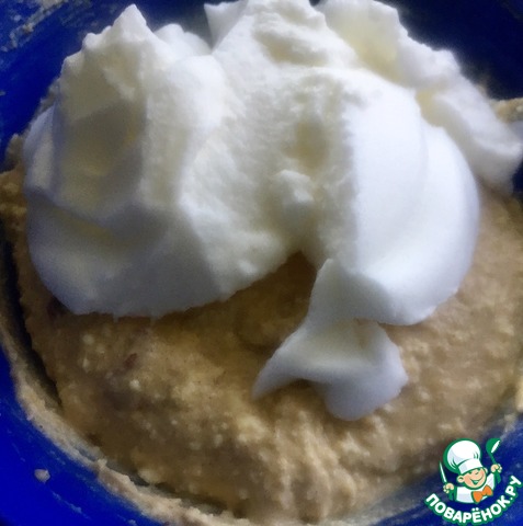 Посыпать на масло половиной кокосовой стружки. Сделать начинку: желтки и белки разделить. Всё, кроме белков и оставшейся кокосовой стружки, хорошо смешать.