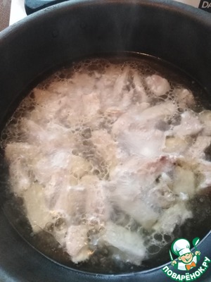 Мясо нарезать брусочками. В сковороде разогреть часть растительного масла и обжарить мясо со всех сторон. Затем влить 2 стакана воды, накрыть сковороду крышкой и потушить мясо до мягкости. Время тушения зависит от качества говядины.