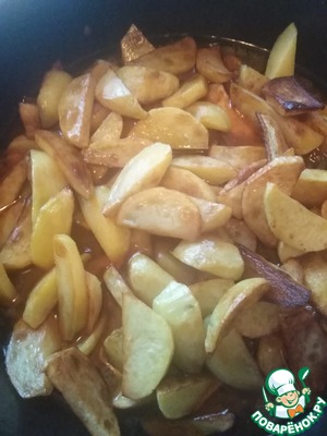 Картофель нарезать ломтиками и обжарить на отдельной сковороде до румяности, использовав часть растительного масла.