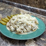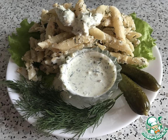 Соус отделено не снимала. Там все предельно просто: в блендере взбить сметану, корнишоны, чеснок, укроп. Для регулировки густоты добавить рассол от корнишонов. Добавить натёртый па мелкой терке пармезан.