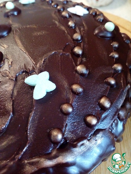 Остудить на решетке, разрезать на два коржа. Очень пористо и шоко-шоколадно!!! Коржи я пропитала сладким ликером, немного разведенным, можно просто сахарным сиропом или сладким чаем