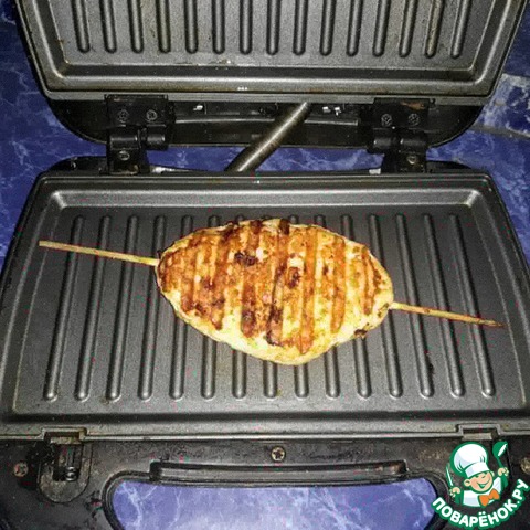 Разогреть мультипекарь с решеткой для гриля и готовить в закрытом положении 10 минут (или же в обычном гриле).