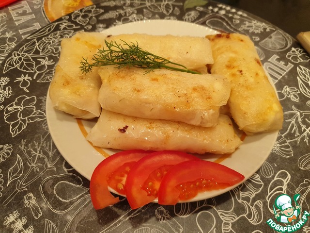 Свернуть, как блинчик. Так же поступить со всеми остальными рисовыми листами и начинкой.