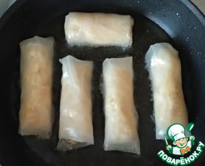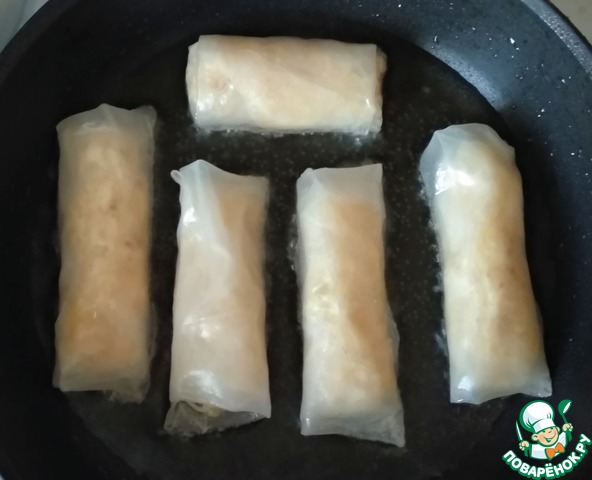 вопрос по рецептуЯ только однажды пробовала такое готовить и во время обжарки рисовая бумага в масле вся раскисла, прилипла к сковороде, перевернуть было просто невозможно! Короче все блюдо я испортила