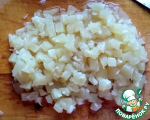 Консервированные ананасы мелко порезать.