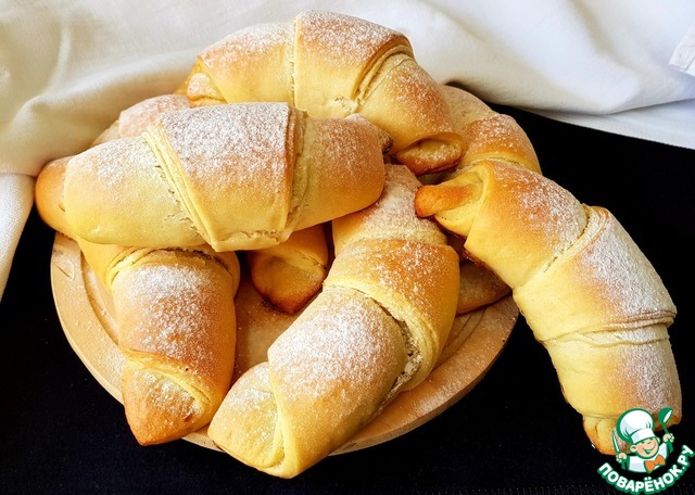 Хочу предложить приготовить нежные булочки с нутеллой. У меня есть рецепт приготовления теста на опаре. Сегодня рецепт сделала безопарным способом. Начинку можно использовать любую. Формовка в виде рогаликов. Готовое тесто получилось слоистое, вкусное.