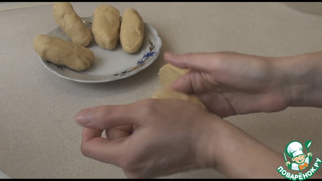 Делим тесто на 4-6 частей, формируем продольные колбаски и отправляем в морозильную камеру, чтобы оно замерзло на полчаса-час.