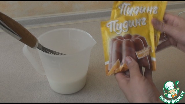 - Пудинг (Шоколадный пудинг или 2 ст.л. какао и 70 гр кукурузного крахмала) — 2 пакет.