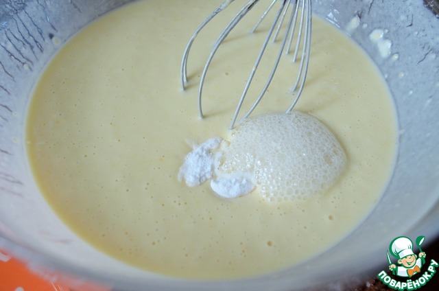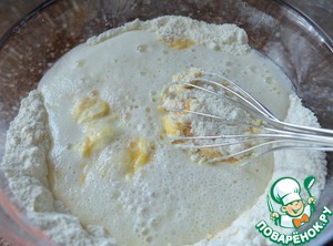 Влить минералку и тщательно вымесить, до удаления комочков.