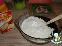 Добавить муку+разрыхлитель+ва ниль, перемешать хорошо