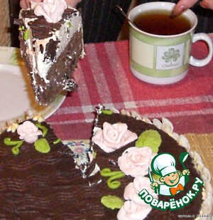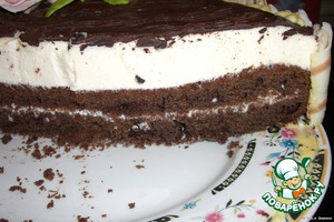 На уже застывший слой суфле выкладываем шоколадную часть. Если есть возможность, дать постоять всему этому, пропитаться пару часов или ночь. |