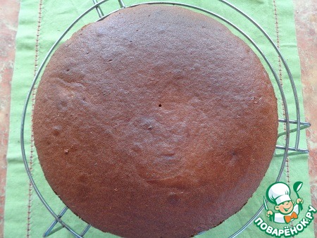 Собрать торт: на дно разъемной формы положить шоколадный корж, затем выложить творожную прослойку – поверхность разровнять. Сверху разместить светлый корж.