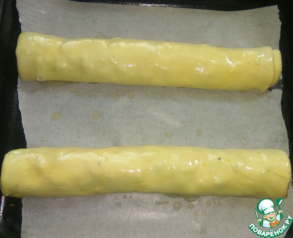 Защипываем шов и кладем на противень с пергаментом швом вниз.