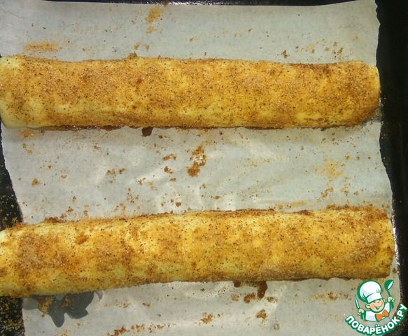 Смешиваем сахар с корицей. Посыпаем рулет.