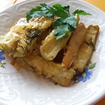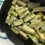 Поливаем 1 ст. л. растительного масла и хорошо перемешиваем что бы оно равномерно покрыло брусочки.