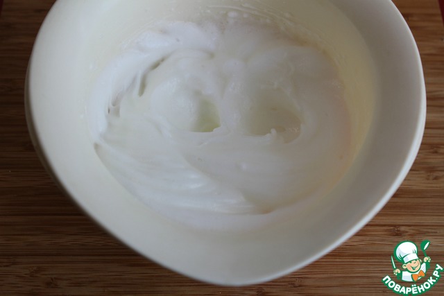 Ввести аккуратно белки в творожную смесь - мешаем снизу вверх.