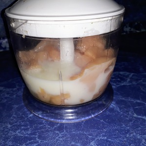 • Измельчить в блендере нарезанное филе, белок и молоко;