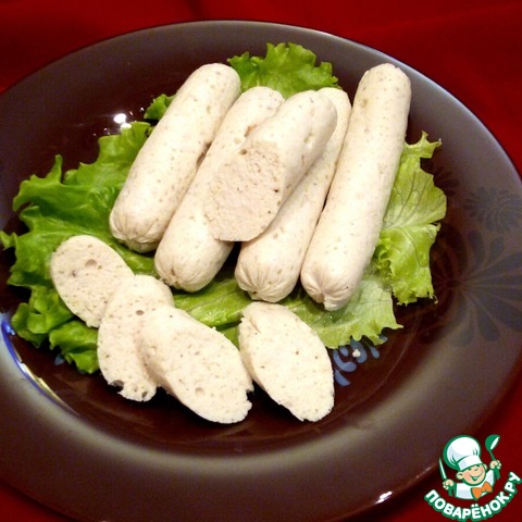 Из данных ингридиентов вышло 8 штуки по 50 грамм. В одной сосиски 62.3 калории, 12.7 белки, 1 жиры, 0.8 углеводы. Они очень нежные и полезные.